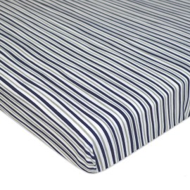 TL Care Fitted Mini Crib Sheet 24 x 38, Soft Breathable Neutral 100% Cotton Jersey Portable Sheet, Navy/Grey Funny Stripes, for Boys and Girls, Fits Most Pack N Play and Mini Crib Mattresses