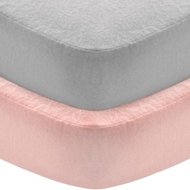 Flannel Crib Sheet 2 Pack, 100% Cotton Flannel, Heavenly Soft Fitted Sheet for Standard Crib (28 X 52) and Toddler Mattresses, Grey&Pink