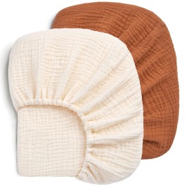 Pro Goleem 2 Pack Muslin Crib Sheets for Boys and Girls, 100% Cotton Soft Breathable Neutral Fitted Baby Bed Sheets Set for Standard Crib Mattress & Toddler Mattress 52x28, (BrownBeige)