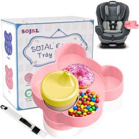 BlueOrigin Car Seat Snack Tray - Travel Tray for Kids Car Seat, Stroller, Booster and Anywhere with a Cup Holder, Toddler Road Trip Essentials Food Plate for Snacks, Toys, Entertainment (Pink)
