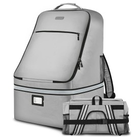 Car Seat Travel Bag,Padded Car Seats Backpack with Steel Cable Handle and Reflective Stripes, Large Durable Carseat Carrier Bag,Airport Gate Check Bag,Infant Seat Travel Bag with Shoulder Strap,Grey