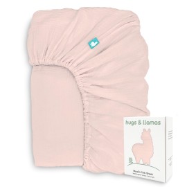 Hugs & Llamas | 100% Organic Cotton Muslin Fitted Crib Sheet - Baby Crib Sheets for Boys & Girls - Neutral (Cotton Candy)