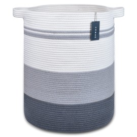 COMSE Laundry Hamper, Extra Large 15.7x 21.7, Cotton Rope Basket, Portable, White & Light Gray & Dark Gray