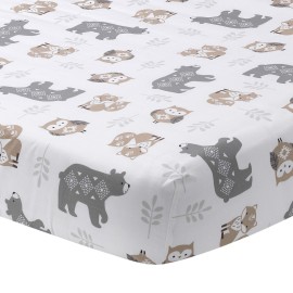Lambs & Ivy Woodland Forest Animals White/Gray Cotton Fitted Mini Crib Sheet