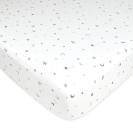 TL Care Fitted Crib Sheet 28 x 52, Soft Breathable Neutral 100% Cotton Jersey Sheet, Stars and Moons, for Boys and Girls, Fits Crib and Toddler Bed mattresses