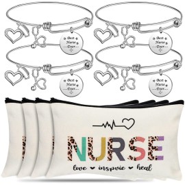 Highergo 8 Pcs Nurse Appreciation Gifts for Women, 4 Makeup Cosmetic Bag with 4 Bracelets, Nurse Week Practitionor Gifts for Thank You Students Supplies Graduation Day Birthday Christmas