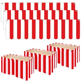Preboun 6 Pcs Carnival Circus Decorations with 3 Carnival Tent 3 Red White Striped Table Skirt Circus Carnival Hanging Decorations Carnival Theme Party Decorations for Birthday Mardi Gras Christmas