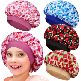 Wimnkuv 4 Pieces Silky Satin Bonnet for Kids, Soft Sleeping Bonnets With Elastic Wide Band, Hair Bonnet for Girls Multicolor