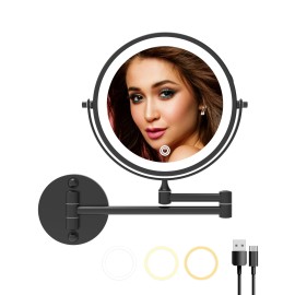 LANSI Matte Black Wall Mounted Lighted Makeup Mirror, Mounted Makeup Magnifying Mirror, Vanity Mirror Wall Mounted, 8 Wall Bathroom Shaving Mirror..