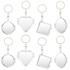 BOSMIOW 8PCS Mini Metal Folding Mirror,Portable Compact Cosmetic Mirror,Dual Sided Vanity Mirror with Key Ring Keychain,Makeup Tools for Women Girls,Square,Circular,Heart-Shaped,Elliptical