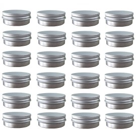 24 Pack (2 Oz/60ml) Screw Top Round Aluminum Tin Cans, Metal Tin Storage Jar Containers with Screw Cap for Lip Balm, Cosmetic, Candles, Salve, Make Up, Eye Shadow, Powder, Tea