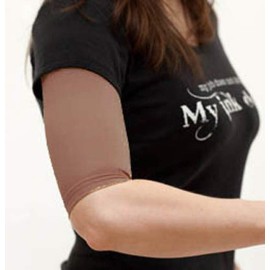 Tatjacket Tattoo Cover Up Concealer Sleeve, 2-PACK, Upper Arm or Calf coverage, UPF 50 Protection, Slip Free, for Men & Women (Unisex), SMALL, BROWN