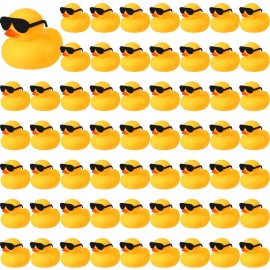 Chivao 60 Pcs Mini Rubber Duck in Bulk with 60 Sunglasses, Small Yellow Rubber Duck Gifts Bath Float Bathtub Toys Tiny for Holiday Cruise Baby Shower Decoration Birthday Party Favors Supplies