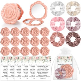 XunYee 30 Sets Bridal Shower Favors for Guests 30 Rose Compact Mirror Bulk 30 Hair Ties Satin Elastic Scrunchies 30 Thank You Card and organza bags Souvenir Gift for Wedding Party Favors(Pink)