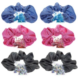 FROG SAC 6 PCS Shaky Glitter Unicorn Hair Scrunchies for Girls, Glitter Fabric Scrunchies Pack with Unicorn Charms, Cute VSCO Kids Hair Accessories