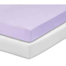 Everyday Kids 2-Pack Fitted Crib Sheets, 100% Soft Breathable Microfiber Baby Sheet, Fits Standard Size Crib Mattress 28in x 52in, White Nursery Sheet and Lavender Nursery Sheet..