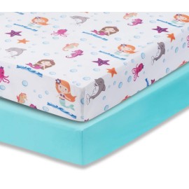 Everyday Kids 2 Pack Fitted Girls Crib Sheet, 100% Soft Breathable Microfiber Baby Sheet, Fits Standard Size Crib Mattress 28in x 52in, Nursery Sheet - Mermaid/Aqua..