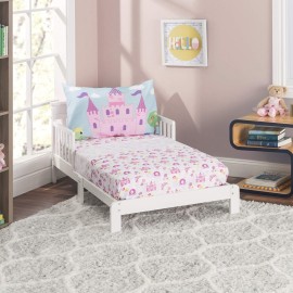 EVERYDAY KIDS 3-Piece Toddler Fitted Sheet, Flat Sheet and Pillowcase Set - Princess Storyland - Soft Breathable Microfiber Girls Toddler Bed Sheets Set