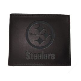 Team Sports America NFL Pittsburgh Steelers Black Wallet | Bi-Fold | Officially Licensed Stamped Logo | Made of Leather | Money and Card Organizer | Gift Box Included