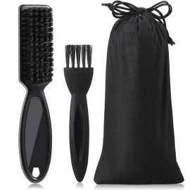 Patelai 2 Pieces Hairdressing Barber Clipper Brush Tools Set, Shaver Razor Trimmer Cleaning Brush with Drawstring Storage Pouch(Black)