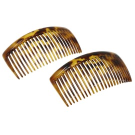 Parcelona French Glossy 23 Teeth Large 4 1/4 Celluloid Acetate Set of 2 No Slip Grip Side Hair Combs for Women, Made in France (Savana)
