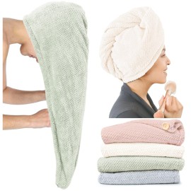 4 Pack Microfiber Hair Towel Wrap Extra Large Super Absorbent & Quick Dry Women Hair Drying Towel with Button,Hair Turbans for Curly Hair Long & Short Hair - Anti-Frizz Extra Large..