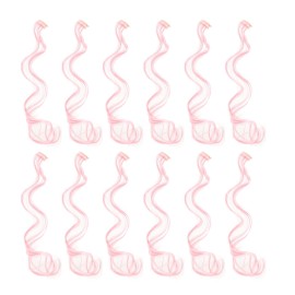 SWACC 12 Pcs Curly Wavy One Color Party Highlights Clip on in Hair Extensions Colored Hair Streak Synthetic Hairpieces (Pink)