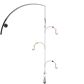 • 2 arm 12pcs white nylon monofilament leaders,main leader test 90lb, arm leader test 55lb, keep hooks free of leader.