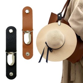 Hat Clip for Travel on Bag/Luggage, PU Leather Multifunctional Duckbill Clip, Outdoor Hat Companion-Black&Brown