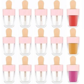 RONRONS Lip Gloss Tubes, 15 Pieces Pink Ice-cream Shaped Empty Lip Gloss Containers Cute Mini Lipgloss Tubes with Wand for DIY Cosmetic Sample Bottles, 8ml