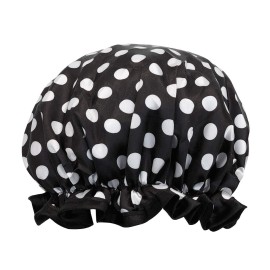 allydrew Reusable Women\'s Waterproof Shower Caps for Long Hair, Black and White Dots