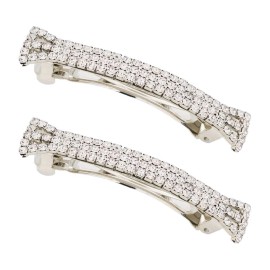 lasenersm Hair Clip, 2 Pieces Hair Accessory with Three Row Rhinestone Crystal, Hair Barrette Clip for Girls and Women, 2.75 in Length, Silver