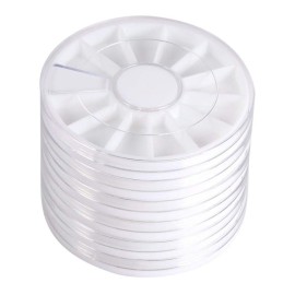 Description: This plastic rhinestone wheel box set is designed with 12 compartments, which can keep your nail art decorations  separate and secure without accident loss. Clear lid make..
