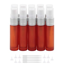 Newzoll 10ml Frosted Orange Glass Spray Bottles with 10 Funnels 5 Pipettes, Small Fine Mist Sprayer Bottles Vials Tube Containers for Essential Oils Perfume Cosmetic, Pack of 10