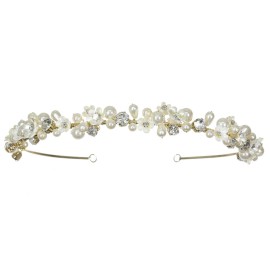SAMKY Gold Bridal Tiara Rhinestone Wedding Crown Pearl Headpiece Hair Accessories for Bride
