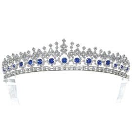 SAMKY Rhinestone Crystal Pageant Bridal Tiara Crown - Blue Crystals Silver Plated T1177