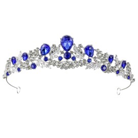 Samky Bridal Rhinestone Tiara Crown Wedding Headpiece with Blue Crystal Bride\'s Hair Accessories..
