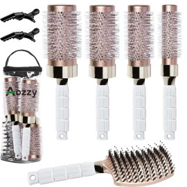 Aozzy Round Brush Set with Boar Bristle Curved Vented Hairbrush for Styling, Drying, and Healthier, Shinier Hair