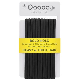 Qooocy Extra Long Hair Tie for Thick and Curly Hair - Elastic Ponytail Holders for Women or Men, No Metal Bands, Long-Lasting Braids Accessories, 12 Count, Black