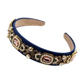 Simulated Pearl Bead Vintage Crystal Headbands for Women Fashion Rhinestone Flower Leaf Alloy Metal Charm Hairbands Hair Jewelry (navy)