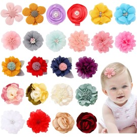 Cinaci 24 Pack Colorful Chiffon Rose Daisy Flower Hair Bows Fully Lined Alligator Hair Clips Handmade Soft Floral Small Hair Barrette Hair Pin Accessories for Baby Girls Newborns Infants Toddlers Kids