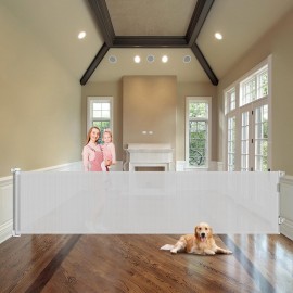 Retractable Design & Space SavingOur baby gate has a retractable design, you can adjust it to the right position according to your needs. The retractable baby gate doesn\'t take up extra space, and when you don\'t need to use it, you can just roll up the mesh easily to save space. Durable, Strong & Soft MeshThe mesh barrier is resistant to washing ..