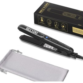 MELYDO Mini Flat Iron, Ceramic Tourmaline Small Hair Straightener for Short Hair/Bangs, Dual Voltage Travel Hair Straightener, Portable Mini Straightener with Storage Pouch(Black)