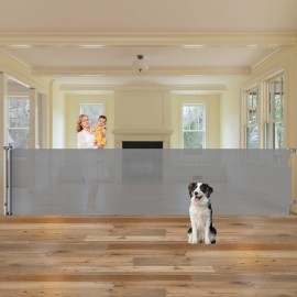 1. 110 Extra Wide Retractable Baby Gates: Extra wide baby gate fits large openings 110 inches wide and 33 inches tall, and can be adjusted to fit your opening. 2. Space Barriers & Baby Fences: Retractable dog gate is easy to use in high-traffic areas and can be used as space barrier, baby fence, etc., such as easily separating a dining room from o..