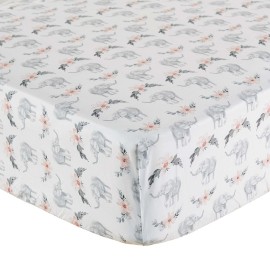Levtex Baby - Heritage Crib Fitted Sheet - Fits Standard Crib and Toddler Mattress - Elephants Flowers - Blush, Grey and White - Nursery Accessories - 100% Cotton