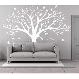 Giant Family Tree Wall Decals Photo Tree Wall Decals with Birds Wall Stickers for Living Room Nursery Bedroom Decoration (White)
