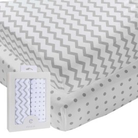 Elys & Co. Crib Sheets, Baby Boy/Girl Fitted Crib Mattress Sheet Set, 2 Pack, 100% Jersey Knit Cotton, Infant and Toddler Nursery Bedding, Grey Chevron and Polka Dot Print, 28 x 52