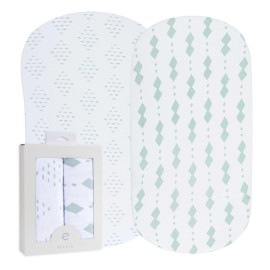Bassinet Sheets Fitted Cover - Flexible Fit 100% Soft Jersey Knit Cotton - Neutral Grey Sage Diamond - 2 Pack Set