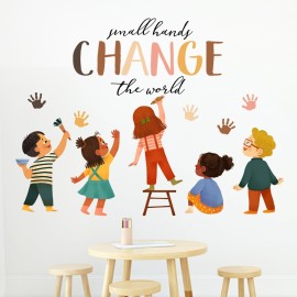 Mfault Small Hands Change The World Equality Wall Decals Stickers, Inspirational Quote Diversity Handprint Nursery Classroom Decorations Kids Bedroom Art, Toddlers Room Preschool Daycare Library Decor