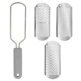 PrettyClaw Callus Remover Foot File Pedicure Callus Tool Corn Remover Removes Dead Skin Foot Scrubber Rasp Heel Shaver Scraper for Feet Gray with 3 Blades with Free Reusable Pouch and Nail File